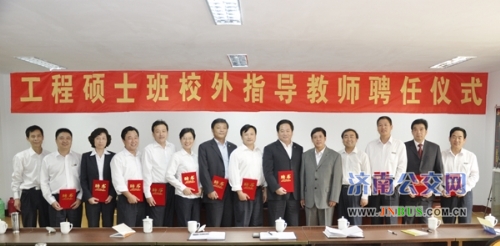 聘任仪式上,包括薛总、刘书记等在内的在总公司范围内挑选的具有高级职称的11名领导同志被山东大学聘任为专业学位合作校外指导教师,承担此次工程硕士班学员的论文调研、撰写等指导工作。