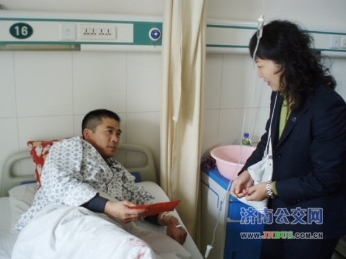 今天,快速公交公司书记李琳为白曰刚同志送去了救助金,并祝愿他早日康复,重返工作岗位。