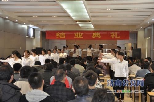 结业典礼上,学员们将三个月来在培训当中学到的知识通过军姿、服务、英语哑语等形式展示给大家,学员们又将自编自演的节目进行了才艺表演。典礼上,职工学校副校长、培训中心副主任徐培利对培训情况进行了总结,总公司人力资源部部长韩绍德针对学员的基本特点,结合公交发展的实际做了重要讲话。最后,总公司纪委书记李万平给大家提出了殷切的期望,鼓励大家回到工作岗位要好好工作,为公交的发展做出自己的贡献。职工学校校长、培训中心主任刘秀华一同出席了结业典礼。