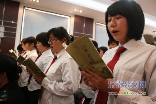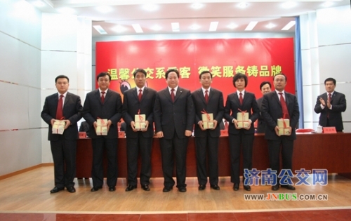 会上,恒生公司副经理续晓滢宣读了《关于对微笑服务论坛选编优秀论文进行表彰的通知》;总公司薛总经理分别为获得一等奖的四队安全员李浩、微笑服务研究会五队分会、六队服管员綦宗伟,和获得二等奖的驾驶员吕延燕、赵合义、李东岳、马宏、姜彦慧、姜胜男颁发获奖证书;薛总经理为公司各车队长授《公交弟子规》一书并合影留念;七十名驾驶员集体朗诵《公交弟子规》,将会场氛围带入高潮。恒生公司经理张庆在会上介绍了公司微笑服务开展情况和《微笑服务论坛选编》的成书过程,并倡导公司全体员工认真学习《公交弟子规》,努力提高自身修养和服务水平,更好的为公交事业服务。
