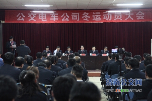 济南公交官网讯 11月9日下午,电车公司2010年冬运动员大会在三楼会议室隆重召开。总公司党委书记、总经理薛兴海,党委副书记、工会主席刘波,纪委书记李万平和相关部室负责人出席会议。薛总经理为电车公司成立的职工培训中心和党员教育培训中心揭牌,并作重要讲话。电车公司经理付建新和班子成员、中层干部、管理人员、各辅助岗位以及驾驶员代表共180余人参加了会议。会议由电车公司党委书记陈兰主持。