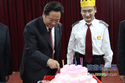 薛兴海总经理在讲话中对电车公司冬运动员大会以及冬运准备工作予以了充分肯定,评价电车公司冬运准备工作周密、细致。薛总强调,近些年来,在公交万余名员工的共同努力下,济南公交取得了一些荣誉,得到中央、省市各级领导的高度评价和赞誉,但也应看到,荣誉也为我们做好冬运工作带来新的动力,我们的服务标准、服务水平都要不断提升,才能不辜负这些荣誉。对做好电车公司冬运工作,薛总作了深入分析。薛总指出,做好冬运工作,客观上有有利条件,也有不利因素,全运会后车况明显改善,社会声誉日益提升,社会对公交的支持力量较大。不利因素是今年西部道路施工较多,电车公司线路调整的较多,职工队伍比较年轻、冬运经验不足,西部市民对公交的依赖性较强等等。但是,薛总强调,电车公司有良好的基础,思想统一、凝聚力强,党委一班人心里装着职工,深得职工的爱戴,具有能打硬仗、战胜困难的精神,在园博会、全运会以及前不久的黑西路施工电车线网临时拆除等各项急难险重的工作中,电车公司都取得了优异的成绩,有不俗的表现,这足以说明,电车公司有一支优秀的员工队伍,领导干部、党员管理人员能够身先士卒、率先垂范,齐心协力完成总公司交办的各项任务,始终贯彻总公司核心精神和服务理念,一心一意为乘客服务。电车公司战胜困难没问题,总公司党委放心,也相信电车全体职工能向总公司交上一份满意的答卷。最后,薛总向电车全体职工送上了真诚的祝福和祝愿,还亲自为正逢生日的七队驾驶员孙超切蛋糕、送上了生日祝福。