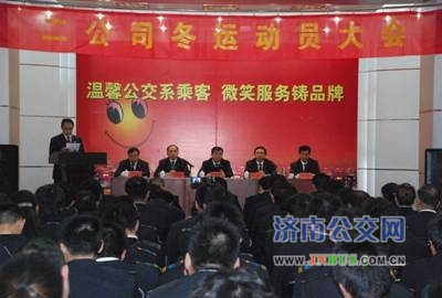 济南公交官网讯 为学习贯彻薛总在冬运动员会上的指示精神,落实好总公司冬运工作要求。 11月9日下午,二公司在总公司礼堂召开了2010年冬运动员会,总公司副总经理石绍滕出席会议并作重要讲话,二公司班子成员,管理人员、职工代表共计150余人参加了会议。会议由二公司党委副书记、纪委书记、工会主席于建民主持。
