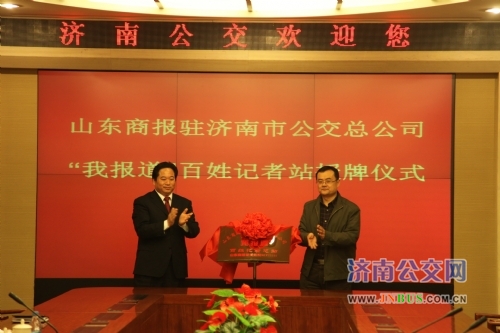 薛总与庞总编为山东商报驻济南市公交总公司“我报道”记者总站揭牌