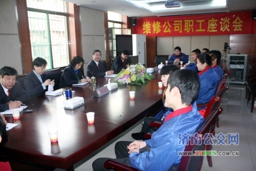 济南公交官网讯 为进一步加强企业民主管理,及时倾听职工意见、建议,11月24日上午,维修公司召开十一月份职工座谈会。公司党委副书记、工会主席车立山,公司有关部室负责人出席座谈会。来自一线的12名职工参加了座谈会。