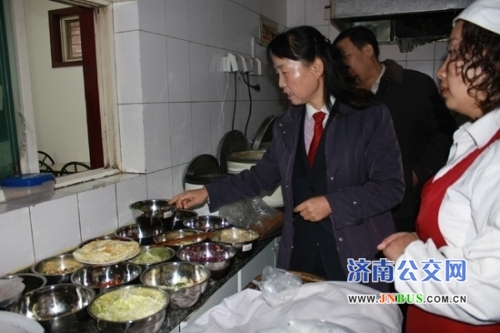 为给职工提供一个良好的后勤保障,保证职工早餐能吃热、吃好、吃饱、吃健康,昨天早上,公交一公司党委副书记、工会主席李秀珍带领各车队分会主席对所属车队小食堂工作及职工就餐情况进行检查。李书记一行分别到达石门、全福立交桥、祝甸、姚家东区等几个站点的小食堂,检查了食堂早餐甜沫、主食品种花样、小咸菜种类、卫生状况及工作人员着装等情况。小食堂各项工作都基本达到了总公司冬运食堂标准要求,并得到了一线职工的一致好评。