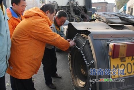 为确保冬季恶劣天气各类物资运输的顺利进行,近日,物资公司危险品运输车队组织开展防滑链安装演练。