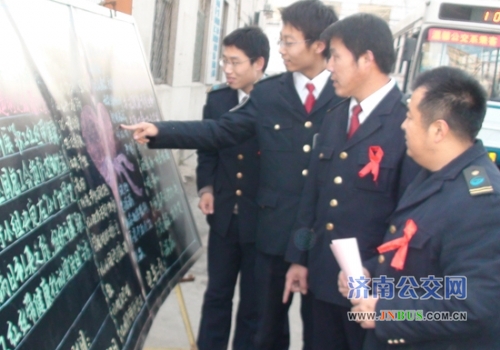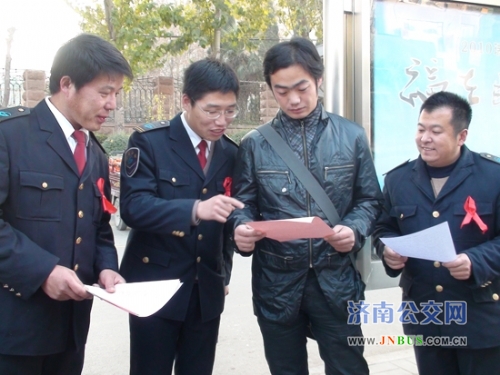 今天是第23个“世界艾滋病日”。据悉,今年世界艾滋病日的宣传主题是"遏制艾滋,履行承诺",旨在让更多的人有更多的渠道能够了解防治艾滋病的相关知识,以对相关人群进行更有效的保护。为做好宣传工作,102路驾驶员刘怀奎、张红升等参加了济南市公交总公司开展的“红丝带”爱心传递活动。在车队组织下,走上公交站点,他们来到公交站台,向来往的市民发放"遏制艾滋,履行承诺"宣传单,宣传艾滋病防治知识。