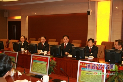 市公交总公司党委书记、总经理薛兴海详细介绍了市公交总公司建设学习型党组织工作。围绕工作中心,济南公交主要开展了五项重要工作:一是提升境界标准,精心动员部署,切实把思想统一到各级领导指示精神上来;二是打造学习型团队,建设学习型企业,为“两带一创”主题学习活动提供组织保障;三是健全学习制度,完善工作机制,为“两带一创”主题学习活动提供制度保障;四是狠抓责任落实,严格考核标准,确保学习活动卓有成效;五是创新学习形式,改进学习方法,确保工作扎实有效。通过工作开展,济南公交职工服务理念明显提升,较好体现了公交驾驶员作为文明理念的倡导者、文明秩序的维护者、文明行为的示范者、文明礼仪的践行者、文明风尚的传播者的良好形象。