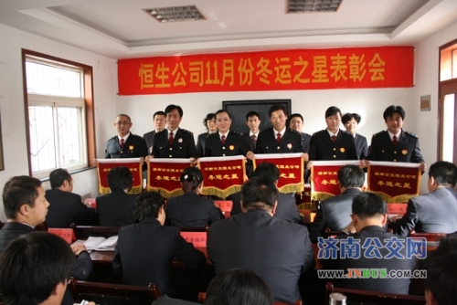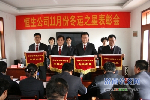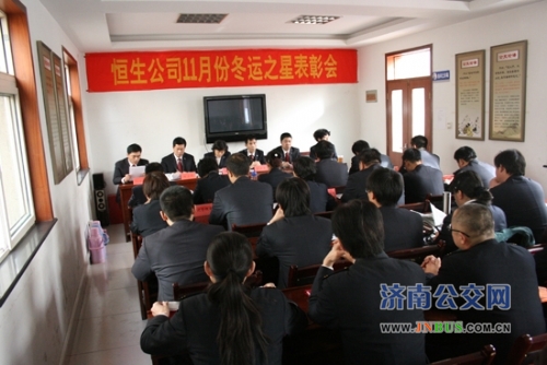 济南公交官网讯 12月10日,恒生公司在四队会议室召开11月份冬运之星表彰会。总公司纪委书记李万平、审计监察部部长兼纪委副书记焦蕊出席了会议。恒生公司经理张庆、副经理续晓滢、科级以上管理人员、冬运之星获奖人员及部分职工代表近50人参加了会议。会议由恒生公司副经理郑宏伟主持。