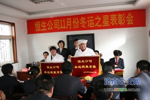 会上,公司副经理续晓滢宣读了恒生公司《关于对十一月份“冬运之星”进行表彰的通知》,总公司及公司领导对二十五名驾驶员冬运之星、两个冬运明星小食堂和四名管理人员冬运之星进行了授旗表彰,获奖的管理人员代表刘继哲和驾驶员代表李萍分别做了发言,表现出了奋战冬运的决心和信心。恒生公司经理张庆在会上介绍了冬运之星的评选情况,并对公司的冬运工作进行了再动员和再部署。