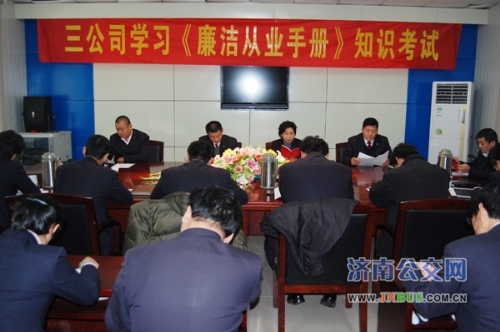 济南公交官网12月13日讯 为加强领导干部廉政教育,推动企业廉政建设,三公司在刘智远举行学习《廉政准则手册》知识考试。公司领导班子成员、各部室负责人、车队队长、副队长共23人参加了考试。