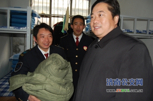 济南公交官网讯 1月5日,寒风料峭,济南市交通运输局副局长、市公交总公司党委书记、总经理薛兴海到三公司五队西营住点走访慰问一线驾驶员。薛总代表总公司党委向三公司职工致以新春的祝福,向坚守在一线的职工表示亲切的慰问。