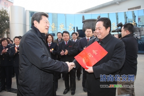 济南公交官网讯 1月7日上午,济南市委副书记、市长张建国到市公交总公司走访慰问企业、劳模和困难职工。他代表市委、市政府对济南公交在过去一年里所取得的成绩表示祝贺,对公交职工一年来的辛勤工作表示感谢,勉励大家发扬成绩,再接再厉,为我市经济社会发展做出新的更大贡献。