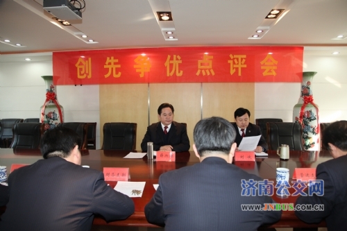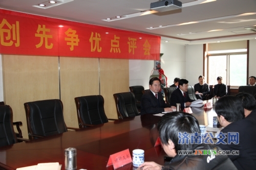 济南公交官网讯 1月11日下午,济南市公共交通总公司党委召开创先争优工作点评会议,市交通运输局副局长、市公交总公司党委书记、总经理薛兴海出席会议并对总公司机关各支部创先争优工作进行了点评,着重就转变机关工作作风讲了重要意见。总公司党委副书记刘波主持点评会议。