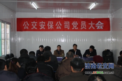 济南公交官网讯 2011年1月12日下午,安保公司召开党员大会,党支部书记陈国强对党员“创先争优”工作进行点评,安保公司党支部成员及党员参加了会议。