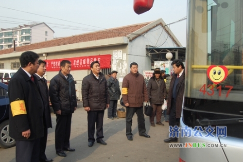 济南公交官网讯 1月14日,公交总公司副总经理姜良、安全保卫部部长赵德荣来到三公司四队检查指导节前安全生产工作。