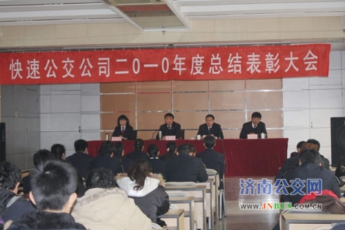 济南公交官风讯 1月20日下午,快速公交公司二0一0年度总结表彰大会在恒通会议室举行。总公司副总经理石军,快速公交公司班子成员,各部门、车队公司负责人,职工代表一百余人参加大会,会议由公司党委书记李琳主持。