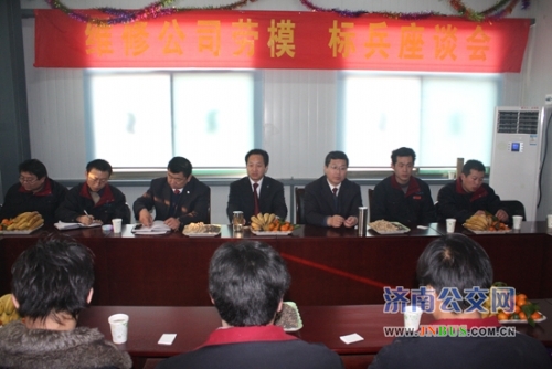 济南公交官网讯 为进一步增强先模人物的模范带头作用,加强企业民主管理,1月25日上午,维修公司在维修五分公司召开劳模、标兵座谈会。公司党委书记、经理王培海,党委副书记、工会主席车立山出席会议,部分劳模、标兵、首席修理工代表参加座谈会。