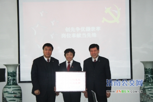 会上,快速公交经理马鲁平回顾了BRT开线1000天以来的工作成绩,对前期的“创先争优,争做公交先锋”活动进行了总结,站务管理部经理张晓玲代表基层党支部对开展创先争优活动以来的工作做了典型发言。总公司领导向站务管理部授予了“创先争优做表率,岗位奉献当先锋”1000天无责任投诉奖牌,为党员驾驶员、党员站务员授予了“亮身份,当先锋”挂牌服务标志,并号召公司全体党员在营运服务工作中,把党员亮明身份、接受乘客监督作为创先争优活动的一项重要内容,深入持久的开展下去。