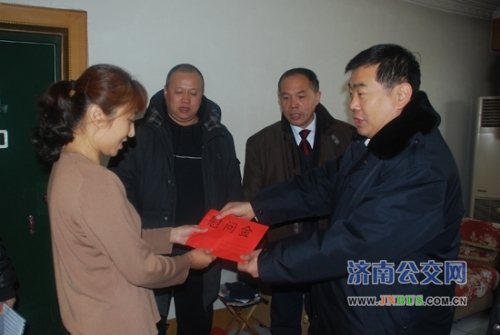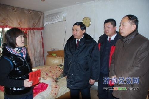 济南公交官网讯 1月26日,总公司副总经理石绍滕受总公司党委和薛总的委托,在二公司班子成员和车队领导的陪同下,看望慰问了一线的病困职工,送去了总公司党委和薛总的温馨祝愿和深切关怀。
