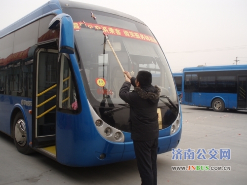 济南公交官网讯 近日,为迎接新春佳节的到来,根据公司安排,清除公交车标语。由于标语粘贴时间较长,再加上天气寒冷,清理起来比较困难。为了解决这个问题,快速公交公司一队想出了不少妙招,既省时省力,又能保证清洁不损伤挡风玻璃。