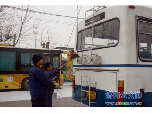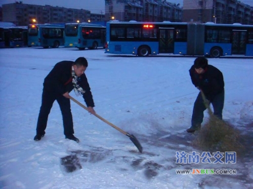 今天早晨,济南突降瑞雪,为了切实保证营运公司早出车,出好车,出全车,维修公司领导干部、全体管理人员、例检员、维修人员、冬运突击队队员,克服一切困难,顾大家舍小家,发扬奉献精神,全部在首班车发车前30分钟到岗,检查车辆,清扫积雪,叮嘱驾驶员雪天行车注意事项,