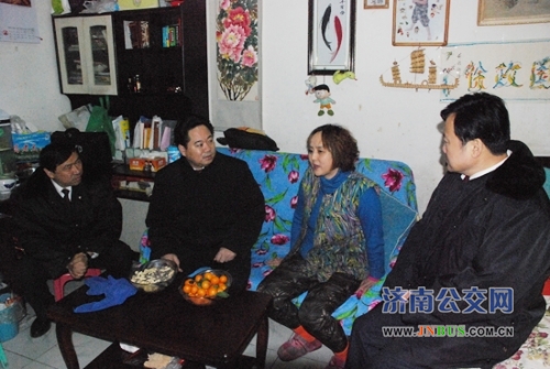 济南公交官网讯 近日,济南市交通运输局副局长、公交总公司党委书记、总经理薛兴海,总公司党委副书记、工会主席刘波及总公司相关部室负责人到二公司病困职工家中进行走访慰问,送去了总公司党委对职工的关爱。