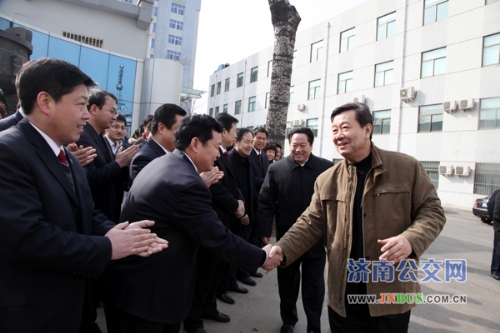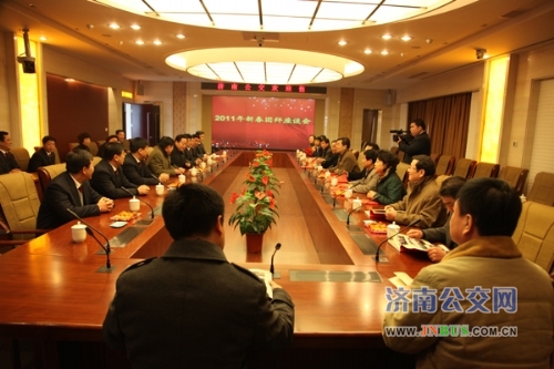 上午10时30分,孙明明局长等局领导来到济南市公交总公司机关驻地,与迎候在那里的总公司领导班子成员、总公司机关各部室负责人、机关工作人员亲切握手后讲话。孙明明局长首先代表交通运输局党委向11000余名公交干部职工表示诚挚的慰问和衷心的感谢,并希望大家在新的一年里再接再厉,让2011年更给力,将济南公交这条流动风景线装扮得更加靓丽!