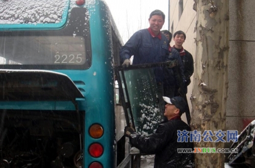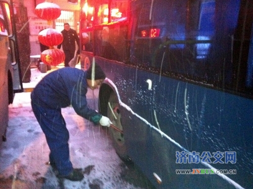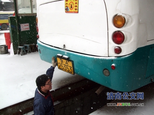 济南公交官网2011年2月14日讯 维修公司在接到降雪的天气预报后,积极制定措施,采取多种方式,落实雨雪天气应急预案,全体职工齐心协力,确保了营运车辆的正常运行。