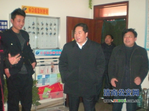 济南公交官网2011年2月14日讯 2月13日,我市突降大雪,市交通运输局副局长、公交总公司党委书记、总经理薛兴海冒着风雪来到三公司四队驻地仲宫,指导查看雪天运行组织工作,慰问雪天坚持在运行一线的干部职工。