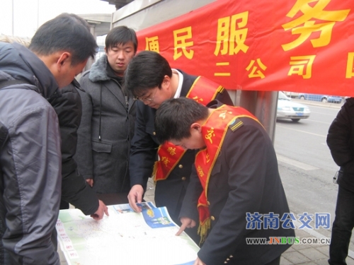 春节过后,为了方便广大乘客尤其是外地来济务工人员,公交35路驾驶员张琰、孙洪波、薛颖、李莹、李清丽、杜思娟等利用休息时间来到长途汽车站进行公交义务导乘,并发放公交换乘导乘图,收到广大乘客赞扬。