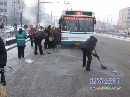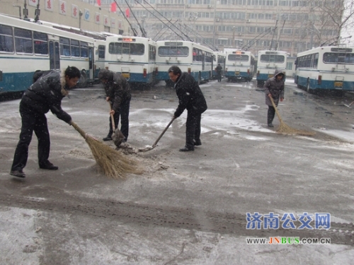 济南公交官网讯 2月13日,兔年的第一场大雪姗姗而至。电车公司全体员工在经理付建新的带领下,早筹划、早准备,战风斗雪打了一个安全仗。