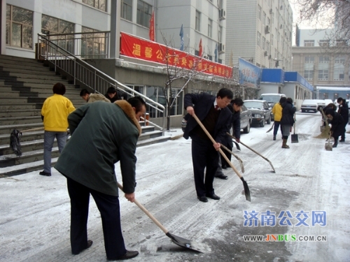 济南公交官网2月14日讯 2月13日突如其来的大雪天气,给济南公交总公司的机关办公和车辆通行都带来了较大的影响。就在一线员工全力战严寒保营运的同时,物业公司全体员工全力做好暴雪天气的后勤保障工作,为保障好总公司机关的正常办公秩序,14日清晨,在物业公司经理的带领下,物业院内全体办公人员在总公司办公楼前清扫院内积雪、铲除路面结冰,特别是针对大门口坡度较陡的地方,及时清理积雪,并进行了铺纸板、撒粗盐等防滑处理,方便了院内办公人员和车辆的通行,维护了总公司院内的正常办公秩序。
