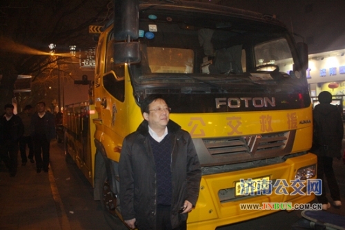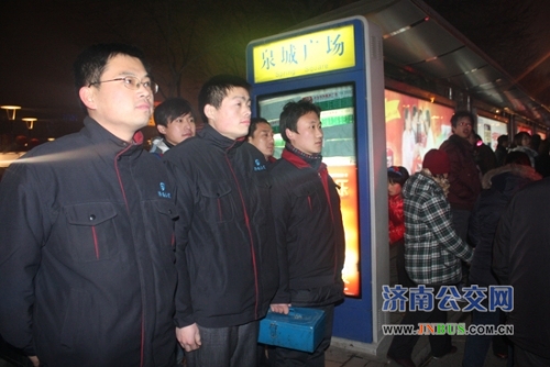 元宵节晚上当众多游客尽情欣赏花灯的时候,维修公司党委书记、经理王培海与部分公司班子成员以及各分公司负责人、部分维修人员都已经在广场周边站牌做好了车辆应急救援的准备工作,公司安排的救援车也严阵以待。一直到最后一班公交车经过广场,职守的维修人员才撤离,由于昨晚公交车辆延长了营运时间,站点维修人员也一直在最后一班车收车,并做好收车车辆检查的情况下才下班。