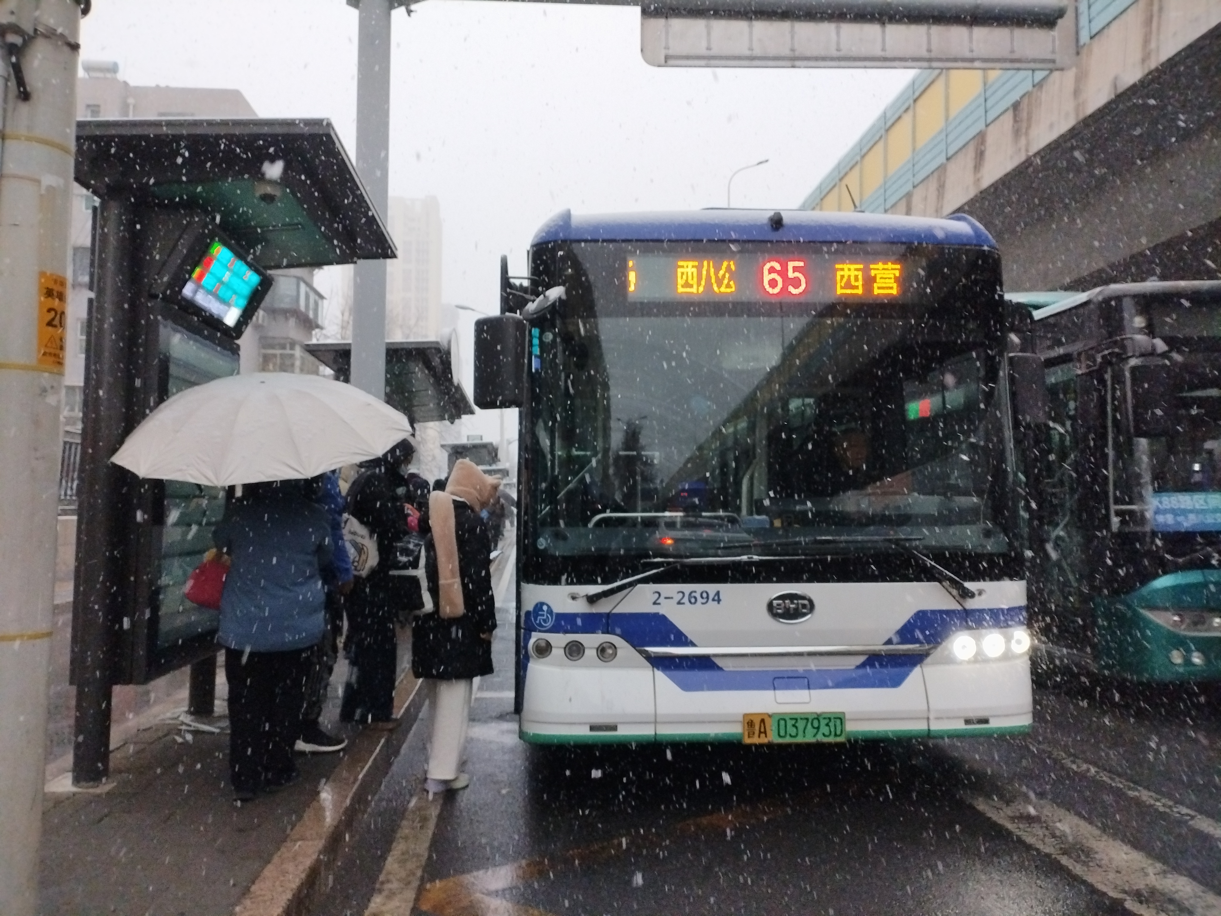 济南公交执行一日一调度,科学制定行车作业计划,根据降雪情况适时增加线路的班次投入,加强线路运行秩序管控,通过现场指挥和远程监控相结合的方式,及时监控、调节线路运行秩序,为市民乘客提供优质出行服务。