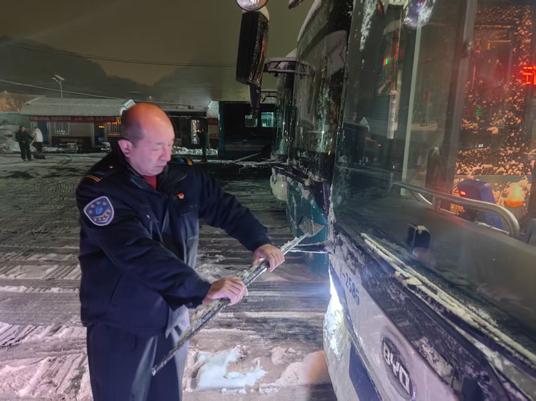 凌晨五点,K21路党员驾驶员马波已经到达重汽南路场站。面对许多未及彻底清理的路段,他主动请缨,与同事换班,承担起头三班的艰巨运营任务。“我是党员,我不先上谁先上!”朴实坚定的话语背后,是沉甸甸的承诺。仔细打扫车辆、全面检查车况、提前热车、开启暖风……一系列准备工作一丝不苟。随后,他紧握方向盘,全神贯注地驾驶着公交车缓缓驶出场站,为清晨急需出行的市民开辟出第一条安全通道。