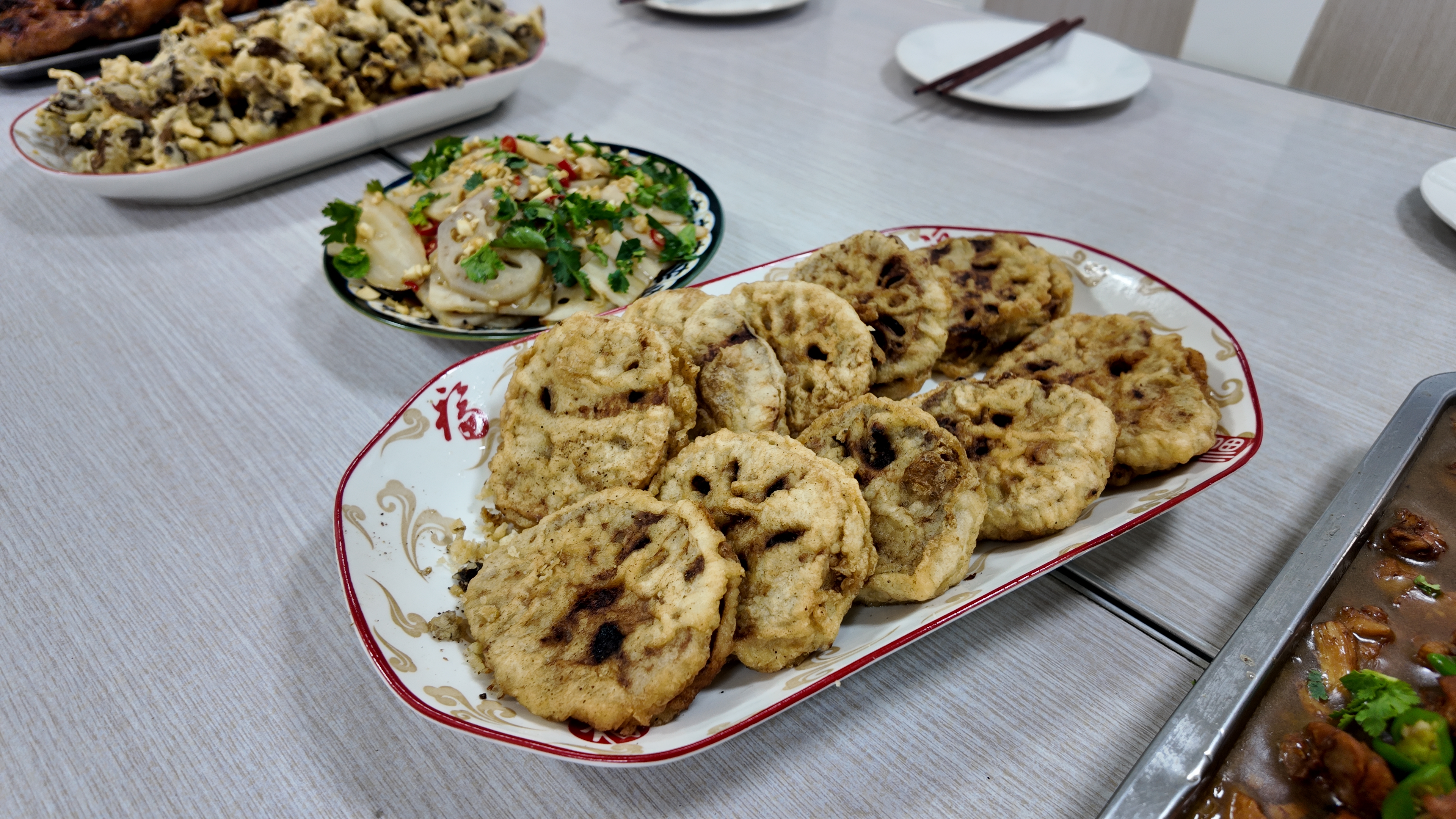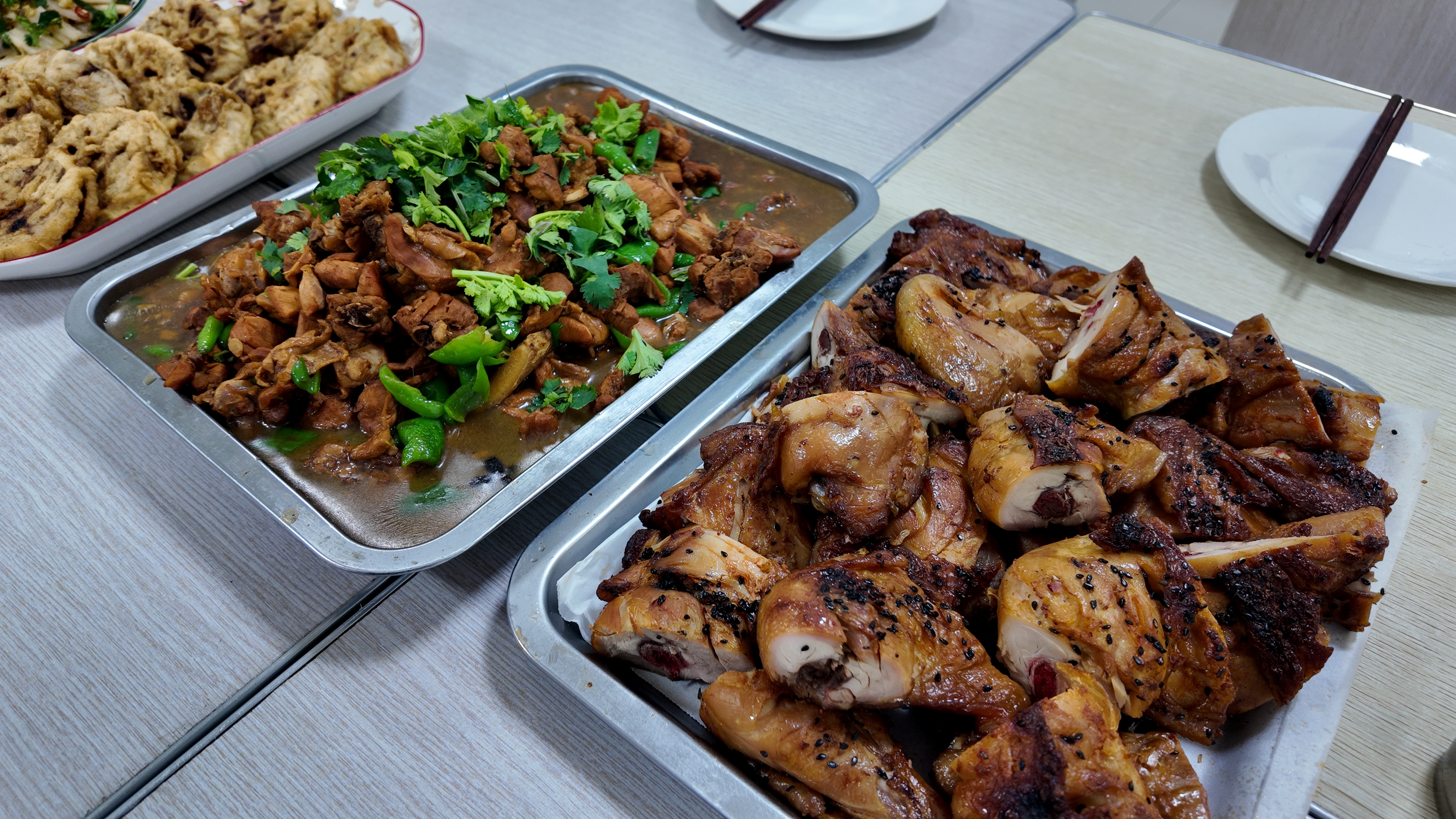 活动现场热闹非凡,参赛的食堂工作人员各显身手。济南东站东枢纽代表队精心烹制招牌菜脆炸鲜藕盒,金黄酥脆的外皮包裹着鲜嫩的藕片,咬上一口唇齿留香;西枢纽代表队则带来秘制烤鸡腿,浓郁的酱汁渗入鲜嫩的鸡肉,色泽诱人、风味独特。