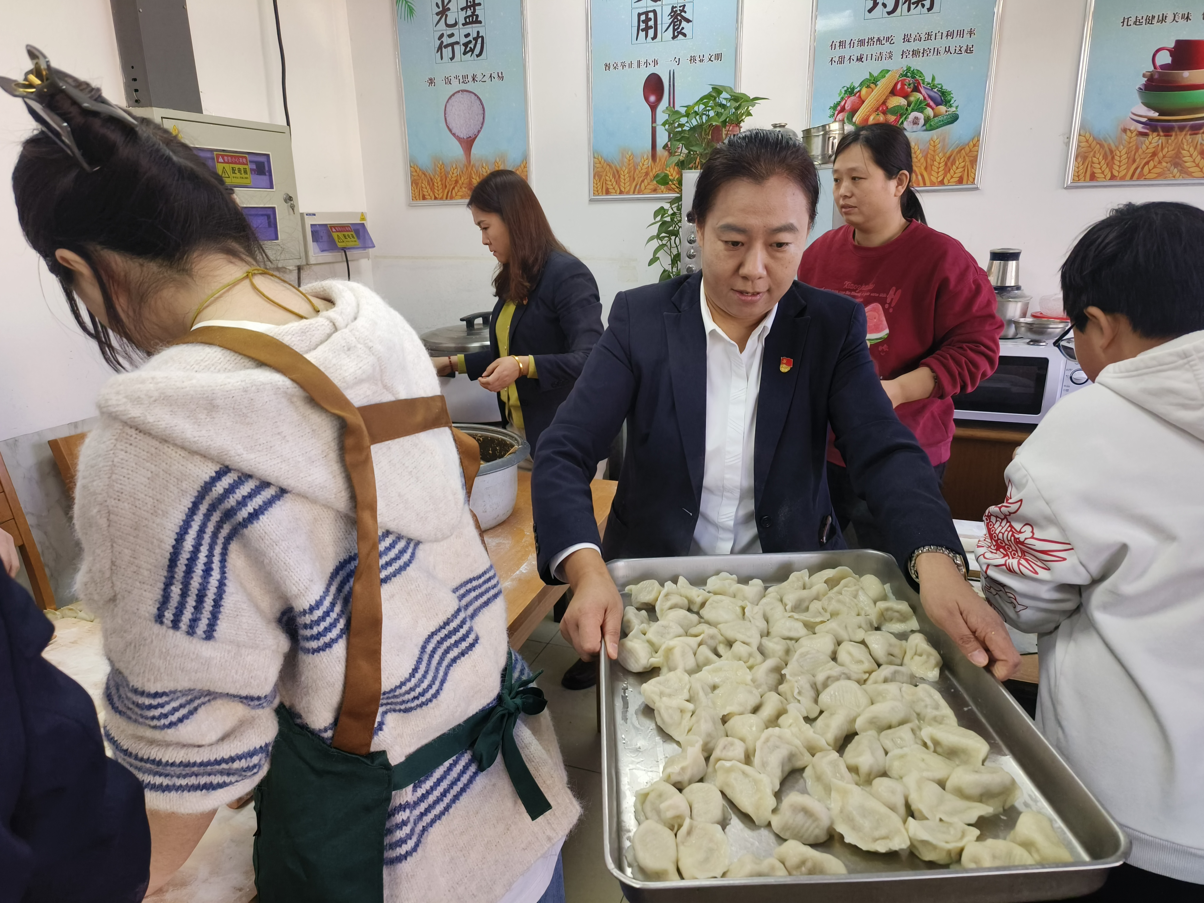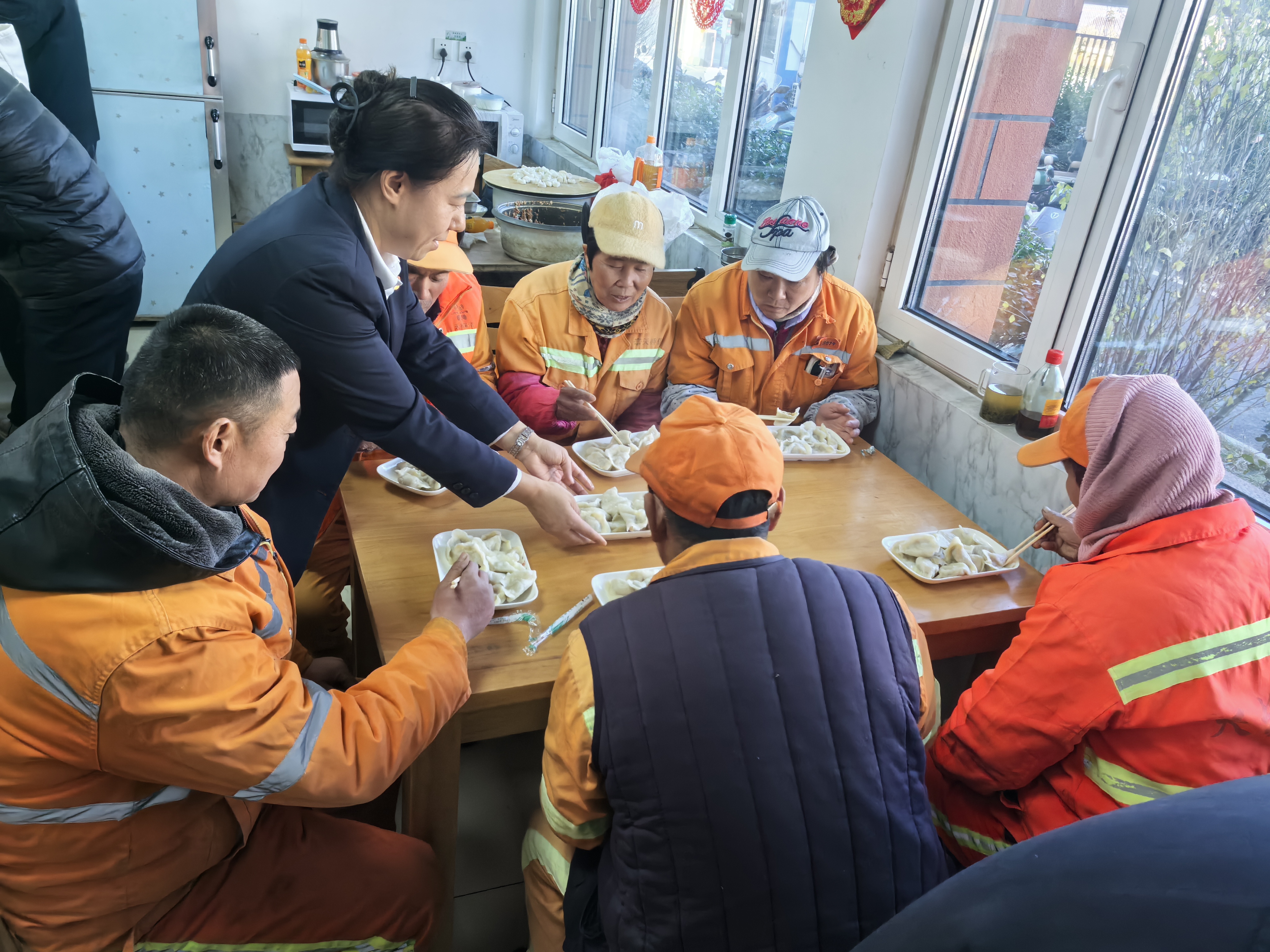 当天恰逢冬至,参观结束后,车队邀请职工家属与环卫工人齐聚食堂包饺子,大家围坐在一起分工协作,切菜、调馅、擀皮……欢声笑语间,一个个形态各异的饺子在大家的通力合作下相继成型。中午时分,结束营运任务的驾驶员们陆续返回车场,与家属、环卫工友们一同品尝饺子,共享暖心时刻。