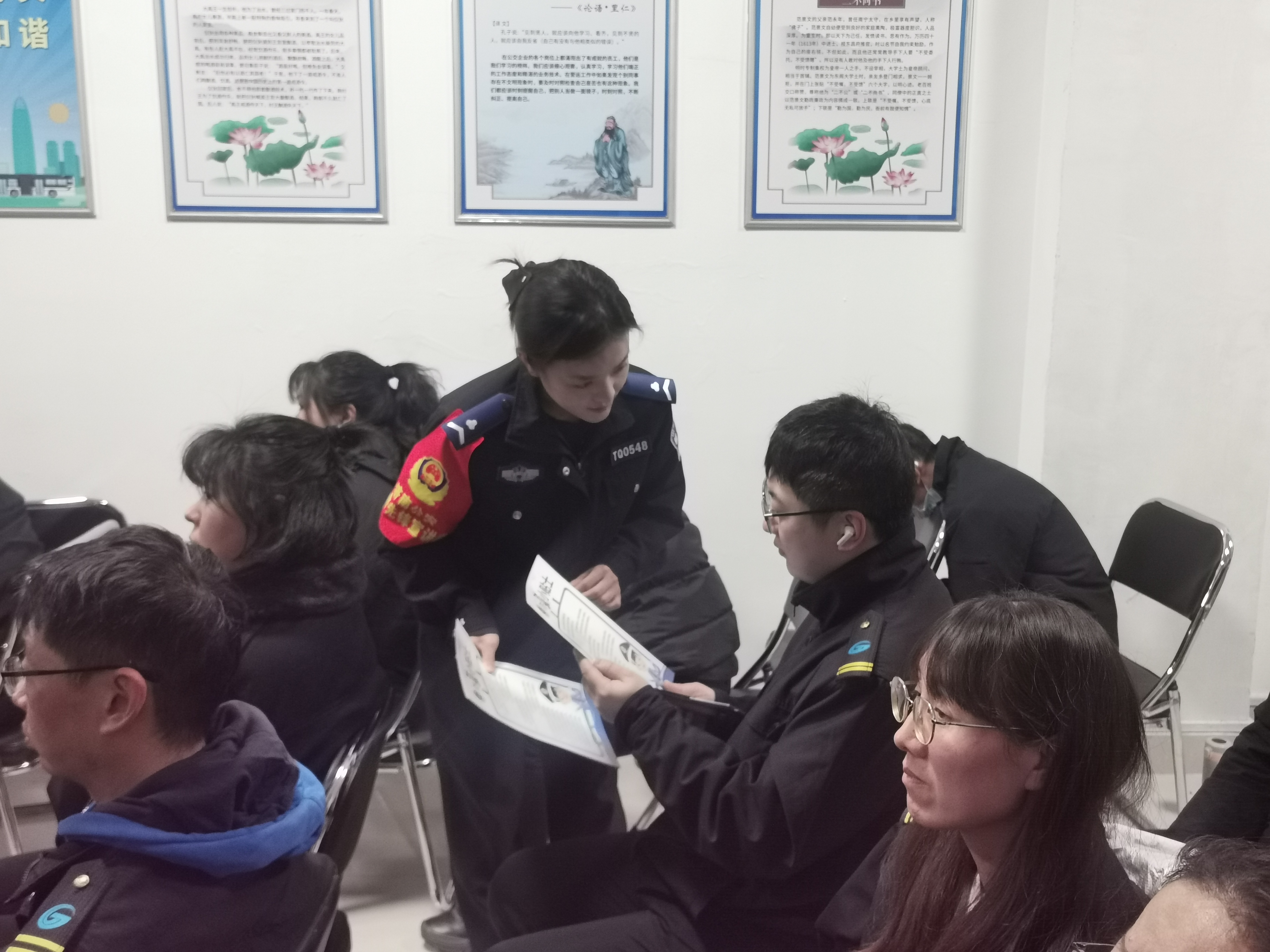 随后,民警赵欣结合新修订《中华人民共和国治安管理处罚法》典型案例,就依法文明养犬进行普法宣传。来自女警宣讲团的宣讲员则聚焦毒品预防、银行卡安全保护、文明使用网络社交平台等三大重点,通过以案释法的方式强化参训人员的安全防范认知,现场同步发放反诈防毒宣传资料。