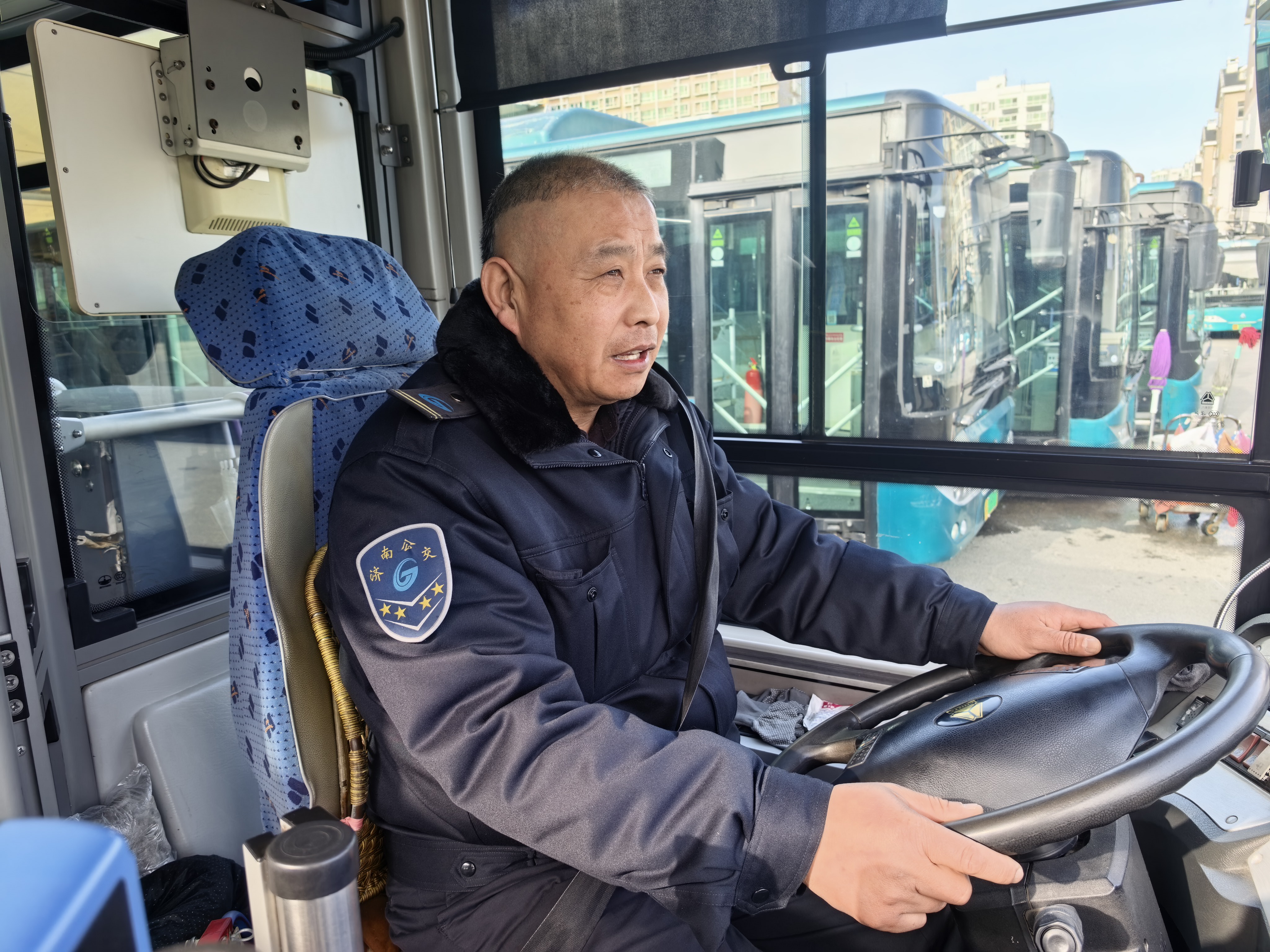 “刘师傅,58岁了还这么拼。”面对同事们,他憨厚地笑了笑:“咱干的就是这活儿。你看,元旦早上赶着去泉城广场、黑虎泉、大明湖游园的老人,赶着早班火车回家的学生……他们都在等我们。车在我们就在,这是很自然的事。”