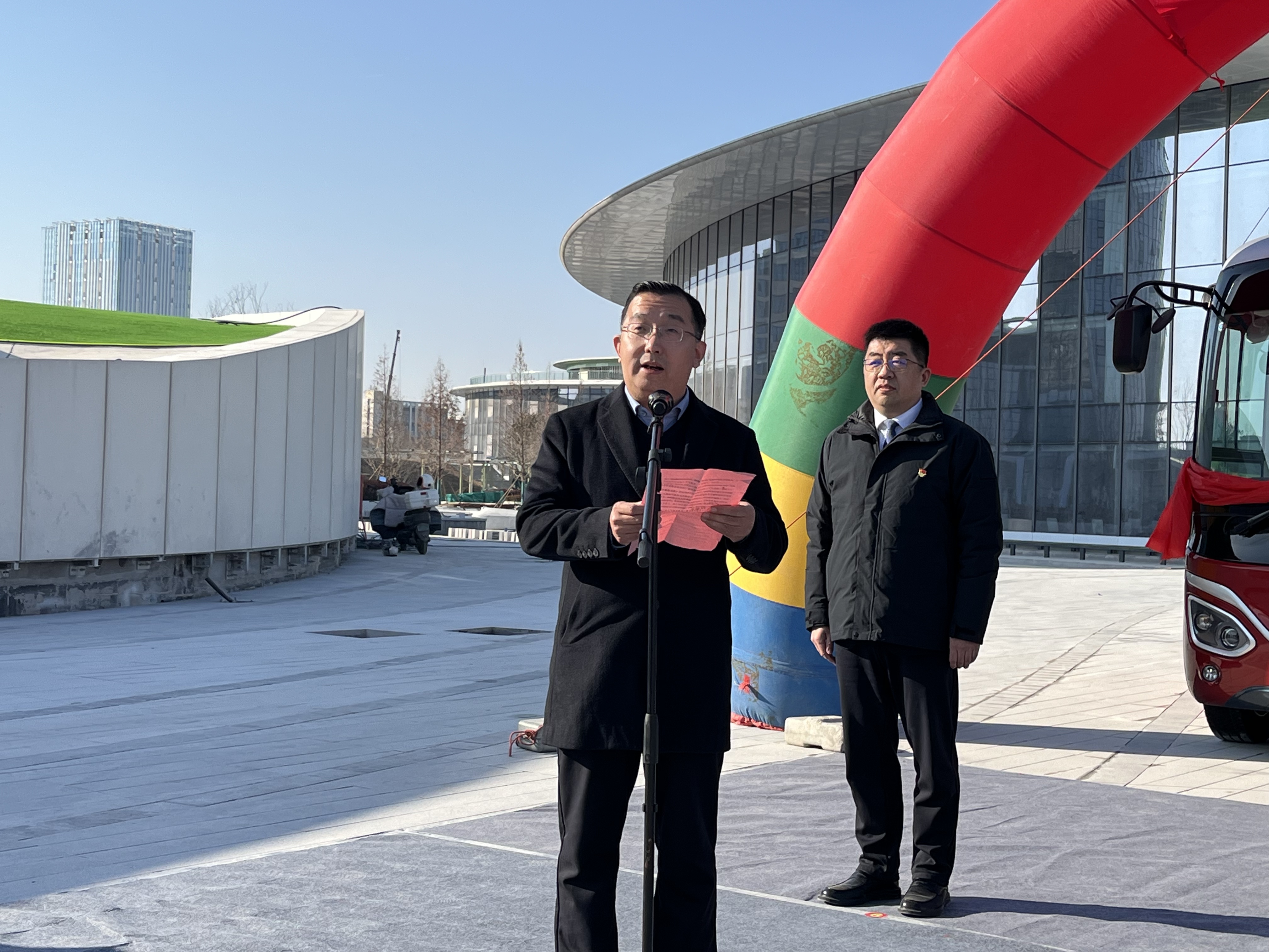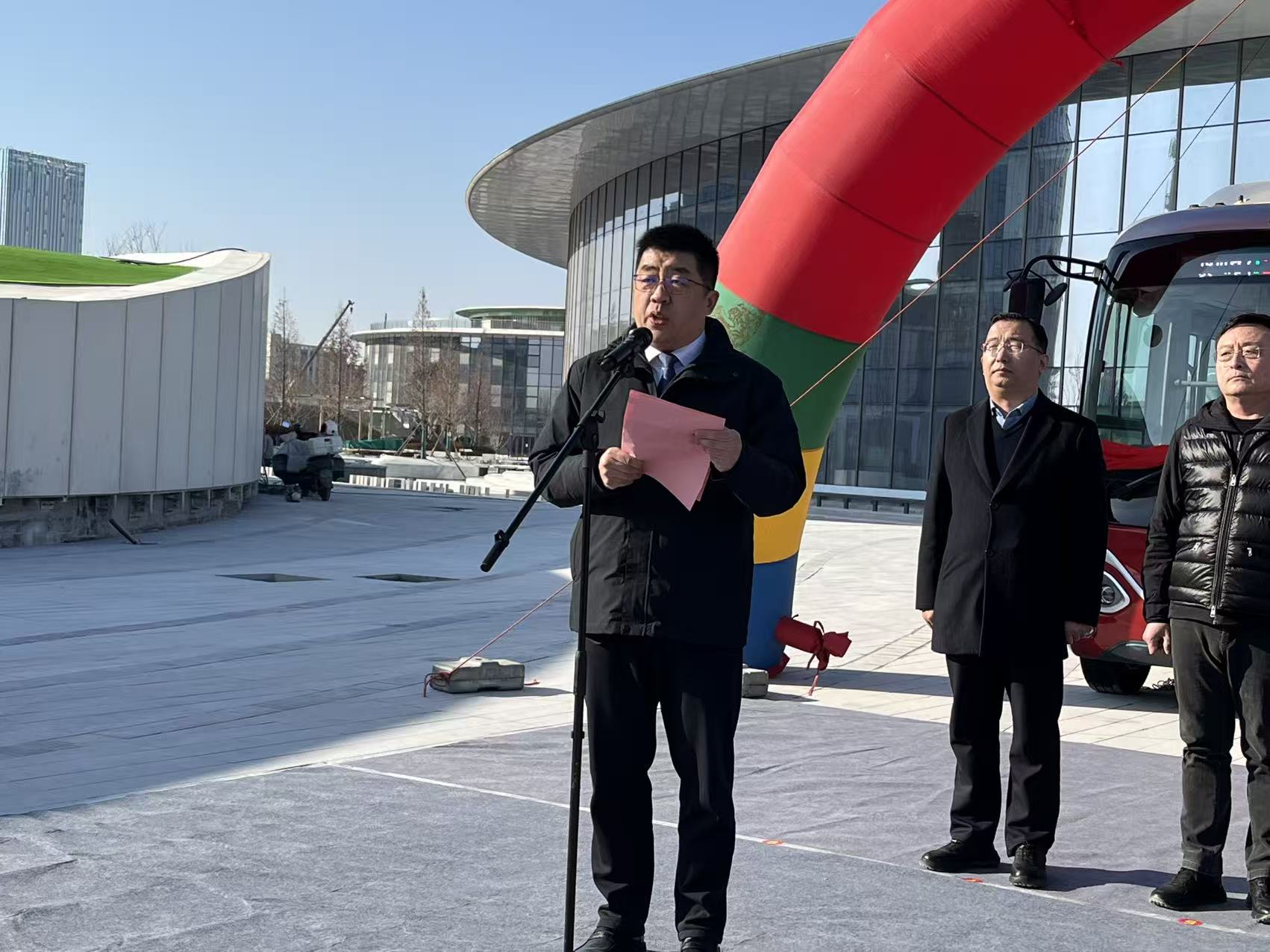 活动现场,济南公共交通集团东部分公司经理韩猛介绍了线路基本情况。济南邦德激光股份有限公司董秘兼总裁办主任陆国豪为线路开通致辞,郭店街道党工委副书记、办事处主任王省昌讲话。历城区副区长唐振涛,济南公共交通集团党委副书记、董事、总经理李峰,济南邦德激光股份有限公司董秘兼总裁办主任陆国豪,济南公共交通集团总经理助理张庆共同为线路开通揭彩。