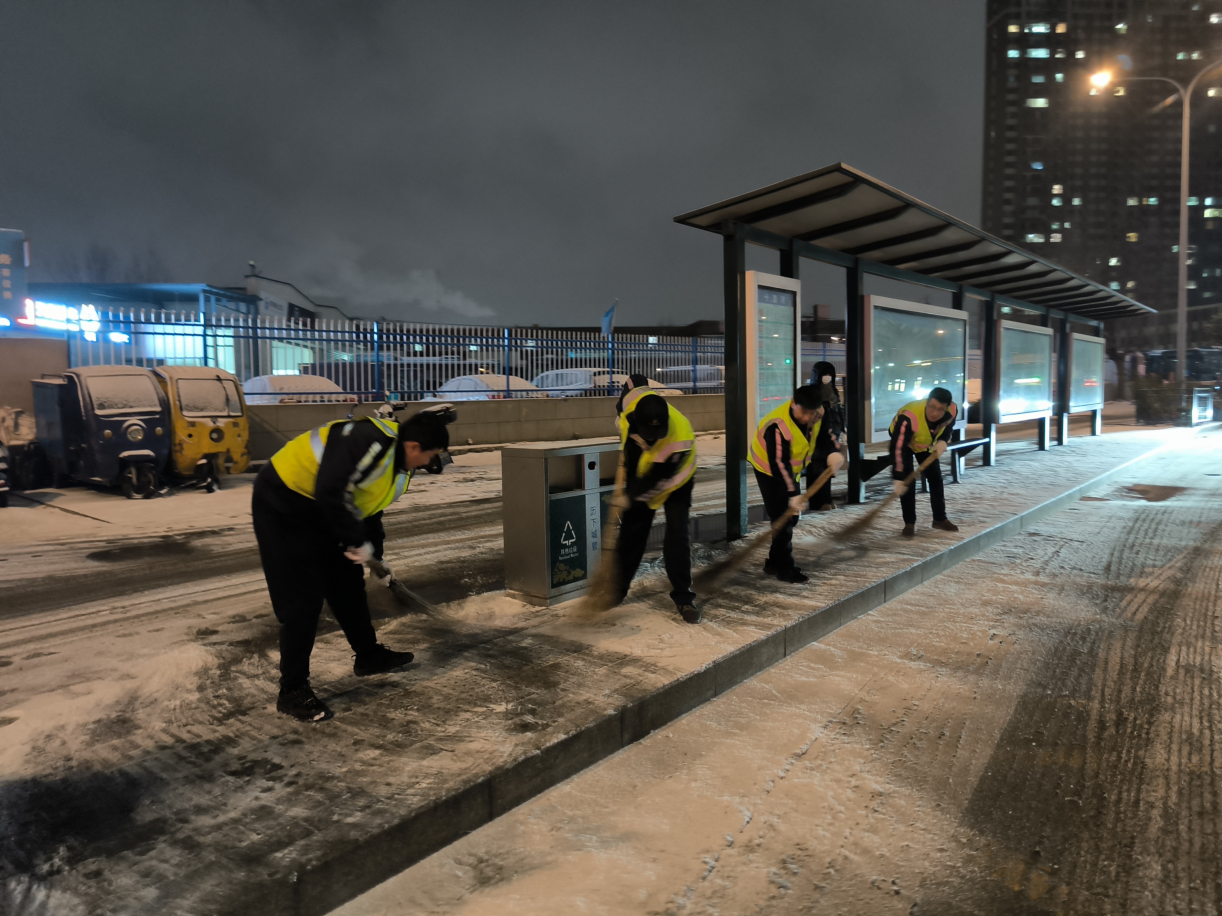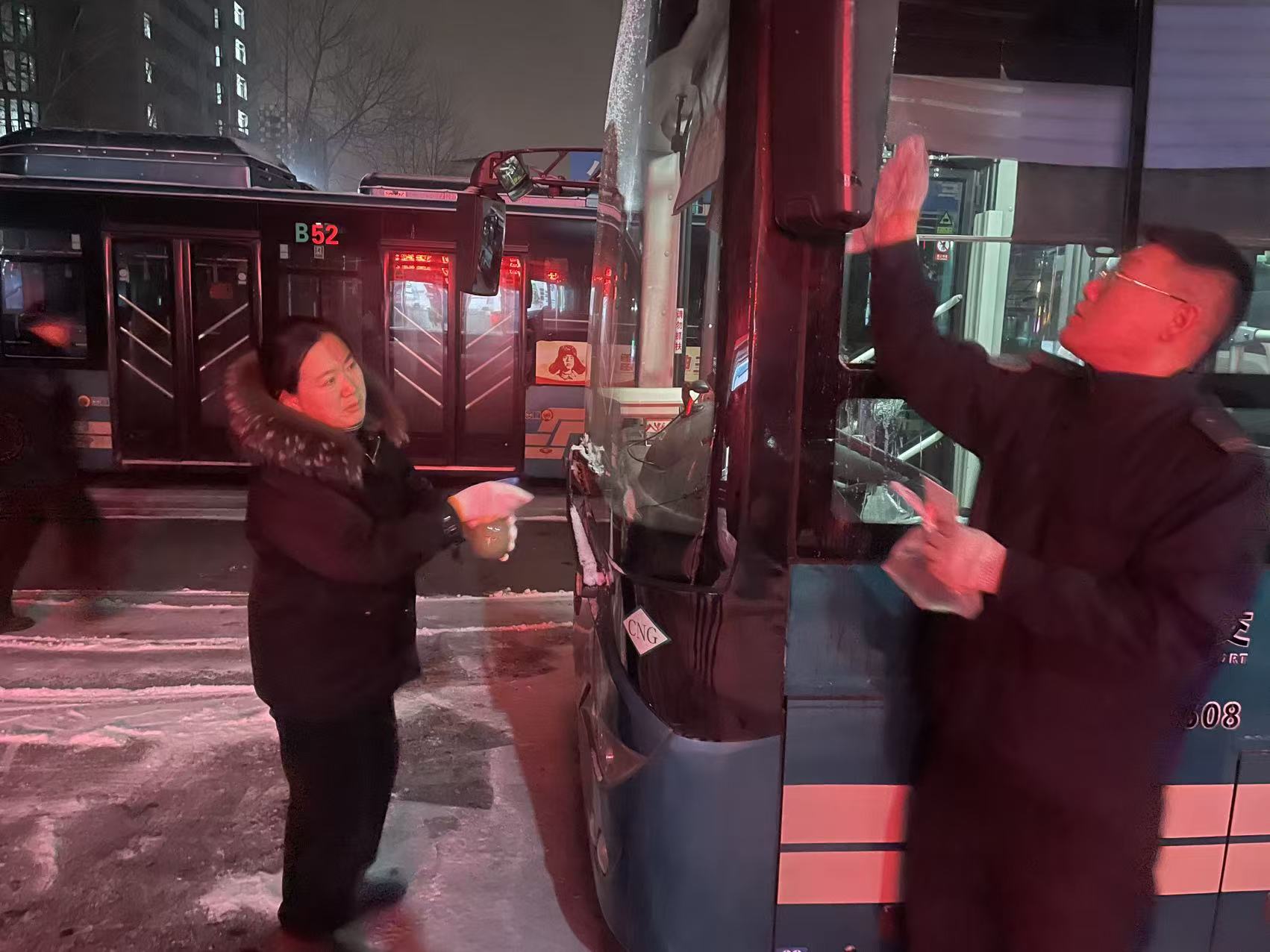 济南公交人员还在线路易结冰路段、路口、站台等重点部位积极开展清冰除雪工作。同时,加强对运营线路的路面巡查,实时反馈道路结冰、积雪等情况,为智能调度提供精准依据,确保行车安全。