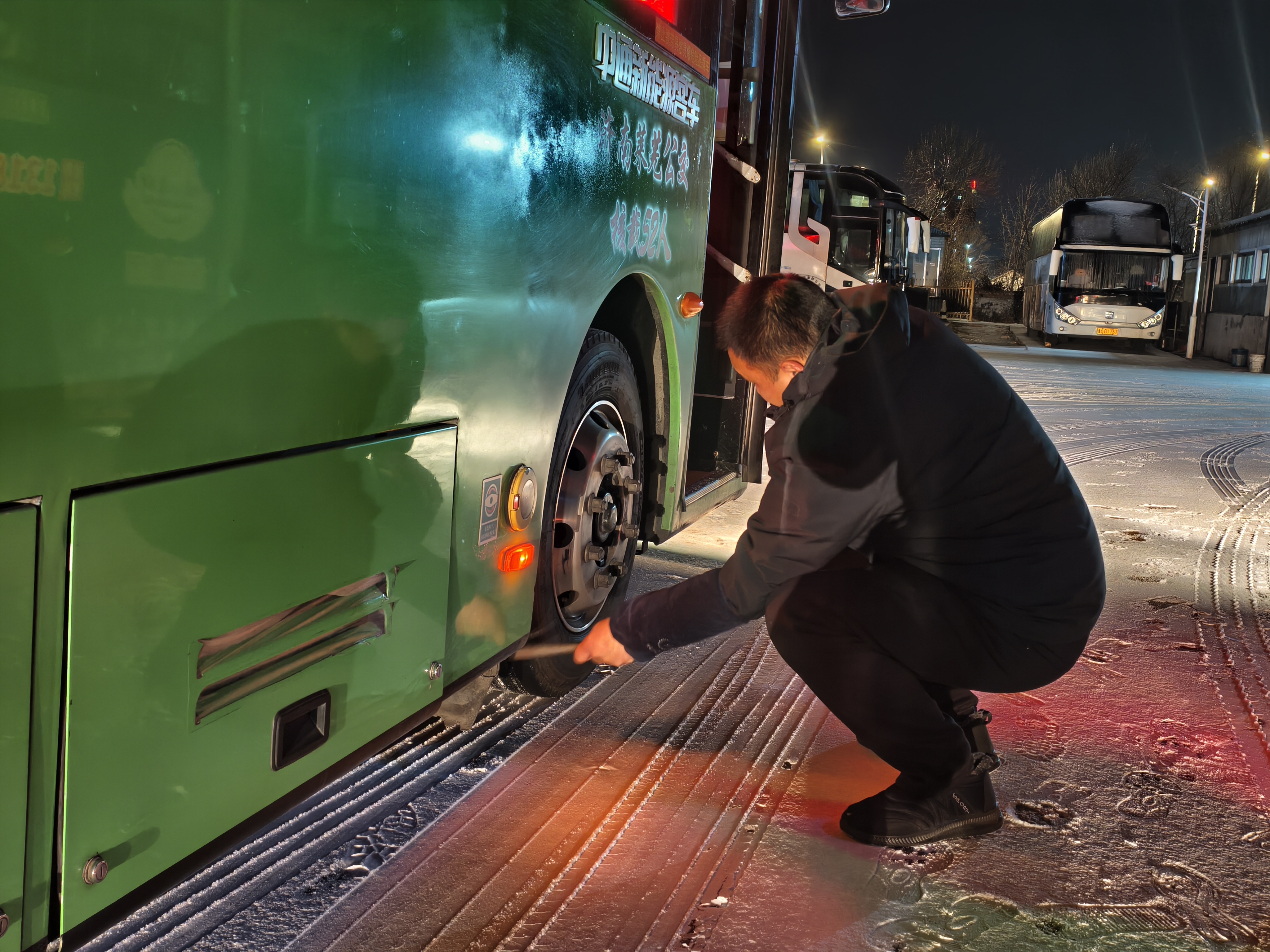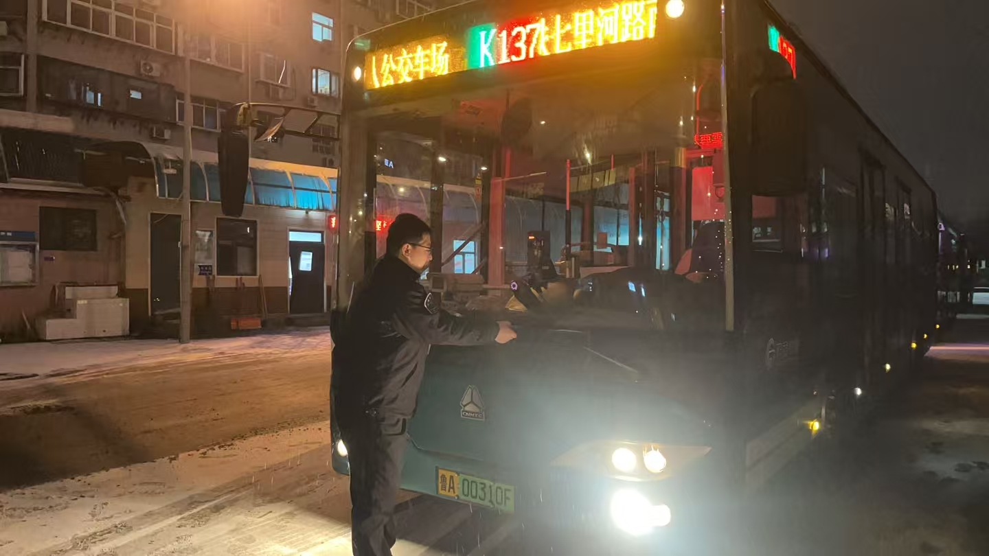 车辆安全是运营服务的核心底线。济南公交组织维修人员对所有营运车辆开展拉网式安全排查,重点检查制动系统、灯光、雨刷器等关键部位,及时清理车窗、后视镜上的积雪薄冰,确保车辆技术状况万无一失。针对纯电动公交车的运行保障,济南公交提前对所有充电桩进行全面检修维护,排查供电安全隐患,保障车辆充电高效稳定。