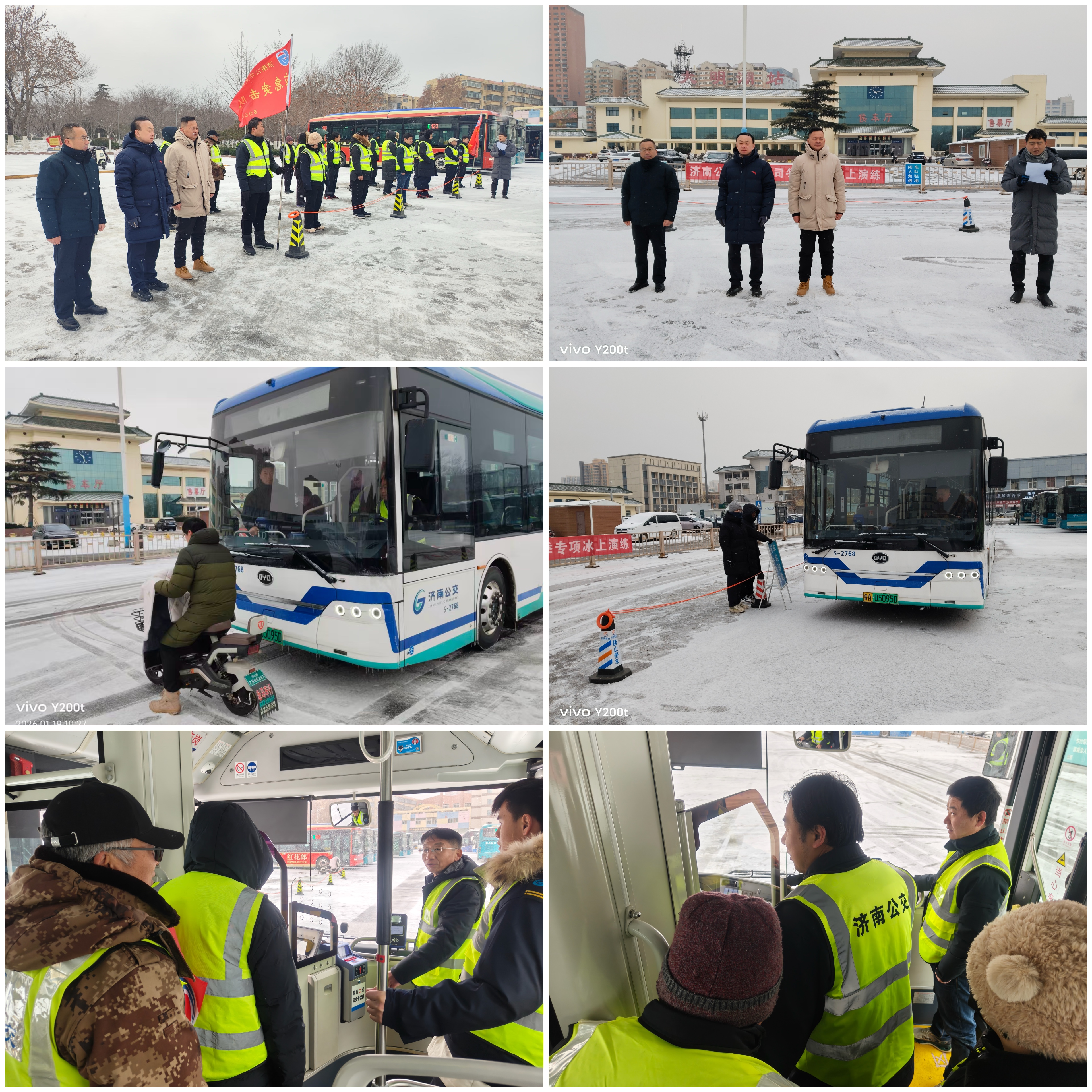 济南公交官网讯 1月19日上午,济南公交干线分公司依据年度演练计划,结合近期低温天气特征,在五队大明湖火车站停车场组织开展冬季冰雪天气防滑应急演练。集团公司安全保卫部副部长刘志刚到现场指导,各车队共计50余人参加。
