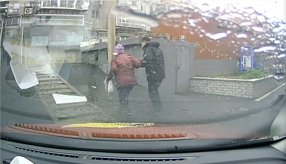 据车载监控视频显示,19日上午,天空飘着雪花,济南恒通出租四分公司鲁AD63080驾驶员张端进,正在进行自己的驾驶任务。行驶到市中心医院附近时,一名老年乘客招手上车,张端进很快就将老人送达目的地,当车辆停下后,细心的张端进发现老人下车后会经过一个很大的斜坡,当时气温很低,地上有一层薄冰,张端进马上下车,将老人搀扶着送到家门口,老人对张端进的暖心服务一再表示感谢。