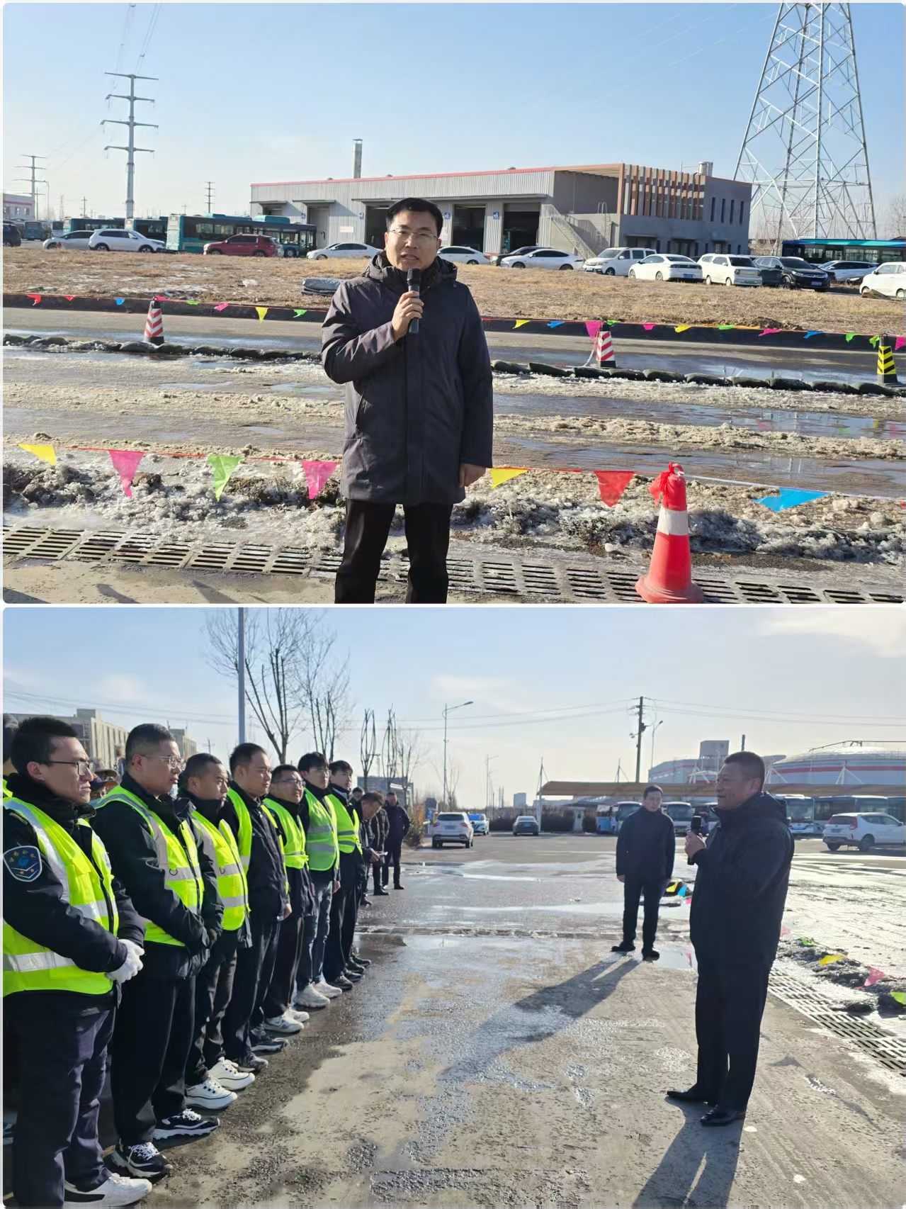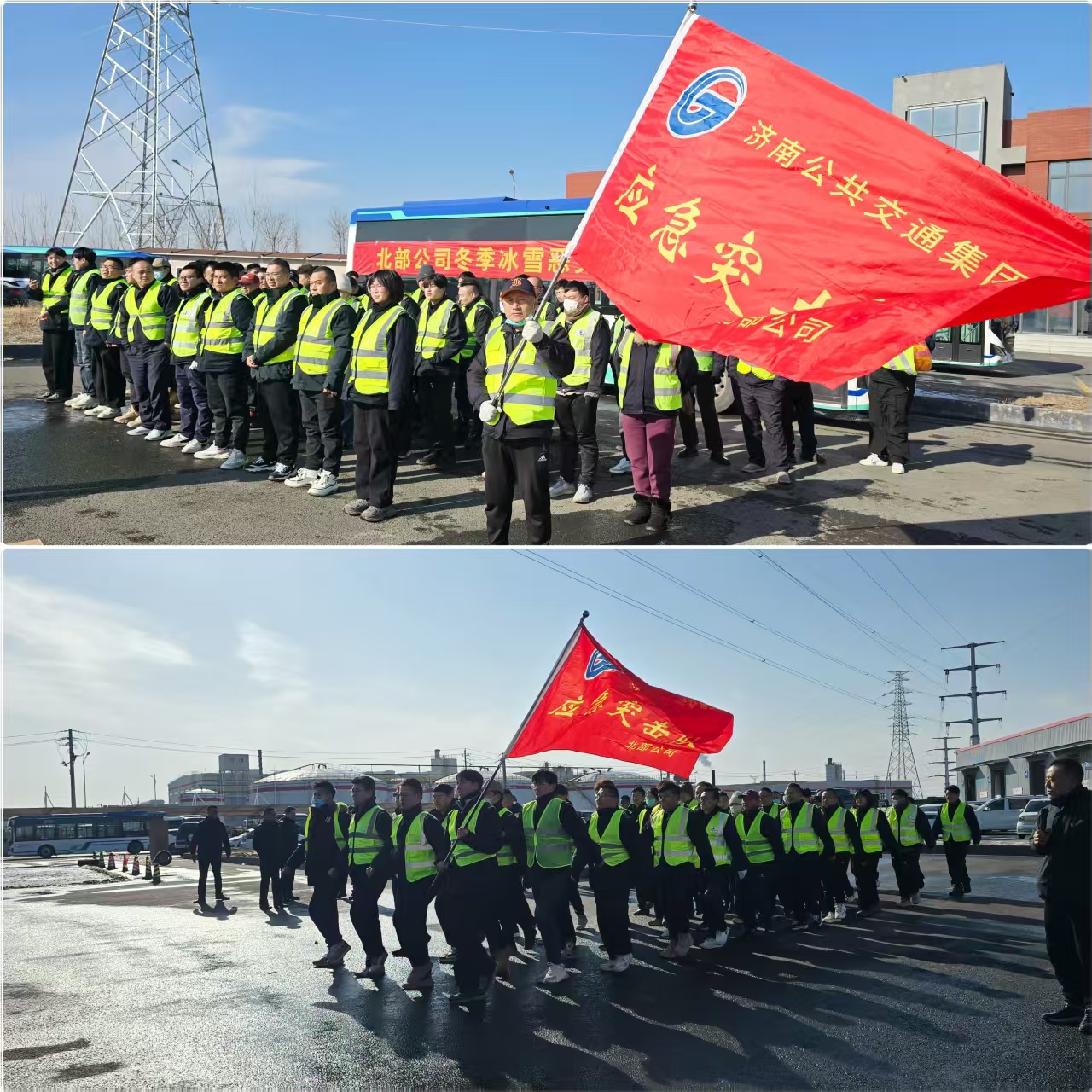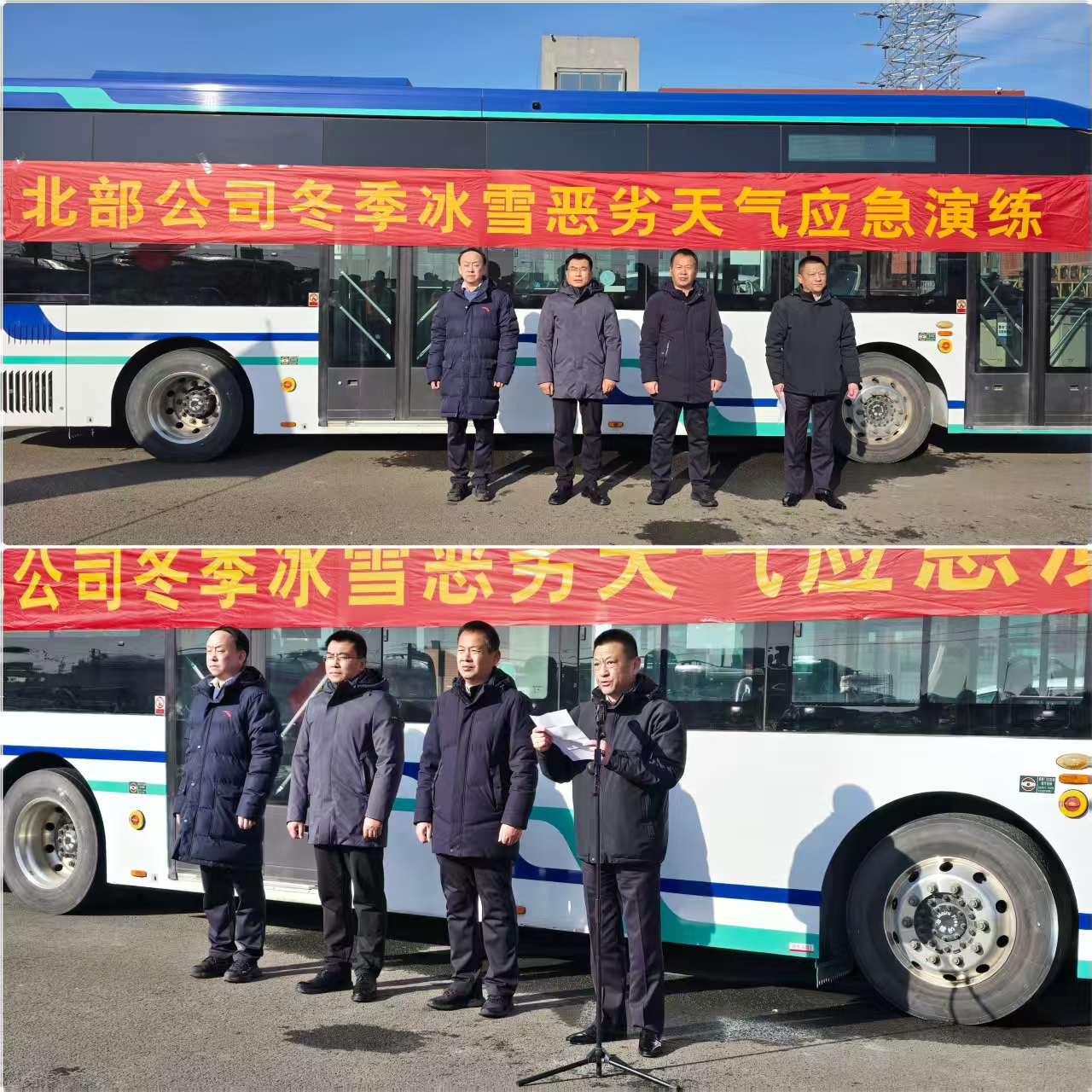 济南公交官网讯 按照集团公司“冬春运安全守护行动”工作要求,结合公司年度应急演练计划及近期天气特点,1月20日下午,北部分公司在桑梓店停车场组织2026年冬(春)运恶劣天气综合应急演练。集团公司安保部部长赵言涛、副部长刘志刚、北部分公司经理张兆强、副经理汤继钢出席,参加演练活动的还有所属安全管理人员及驾驶员代表共计80余人。