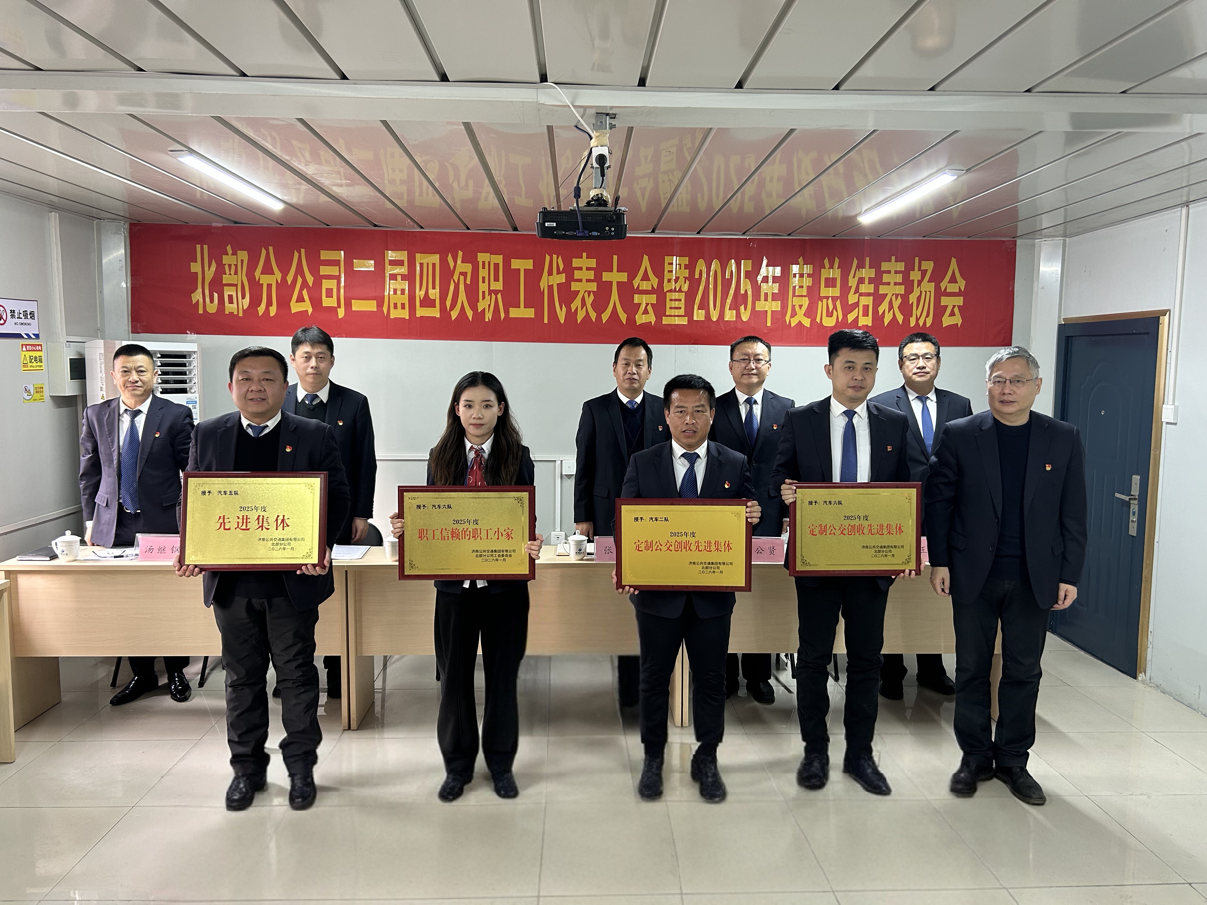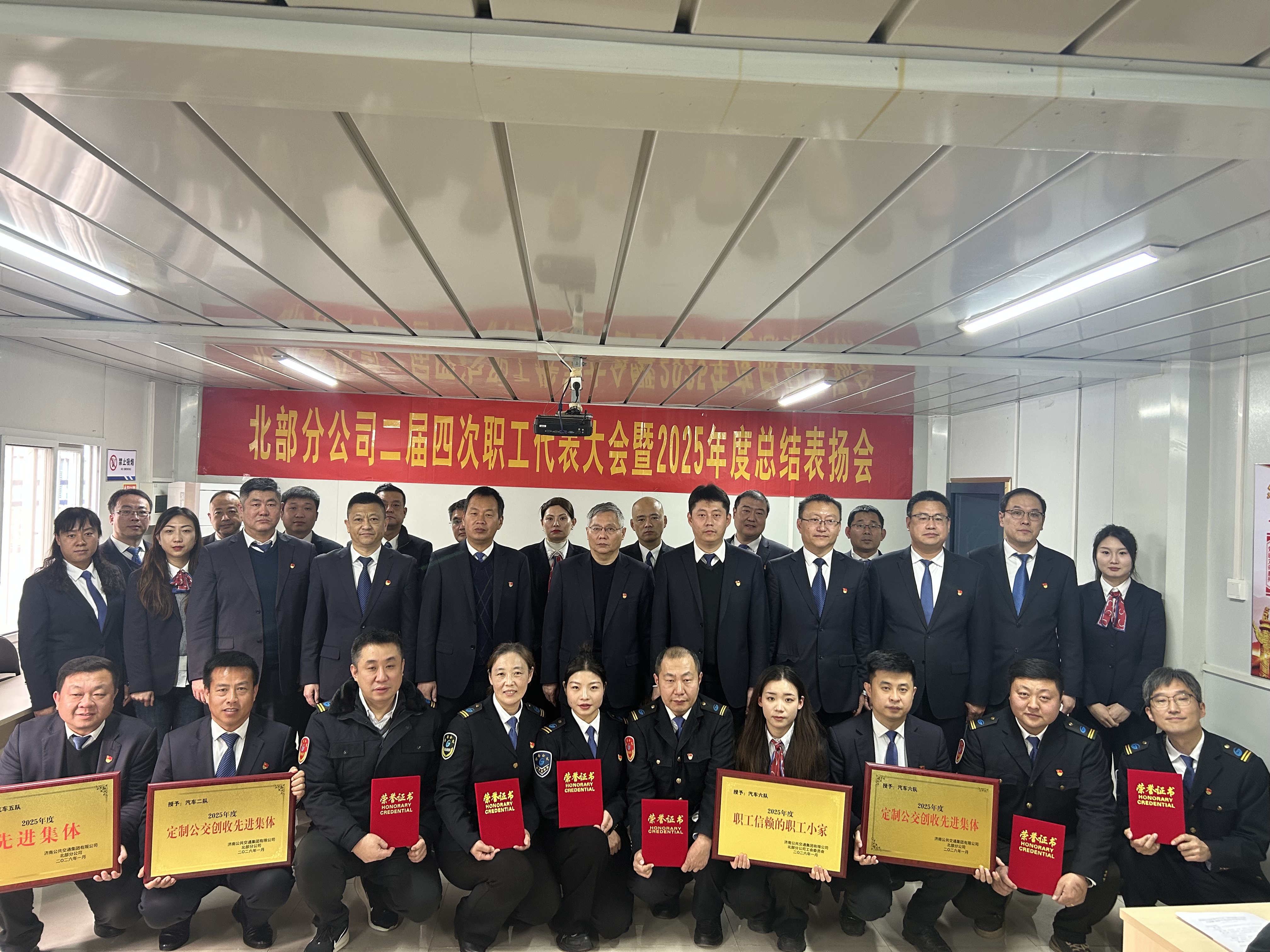 济南公交官网讯 1月28日上午,北部分公司召开二届四次职工代表大会暨2025年度总结表扬会。集团公司党委委员、纪委书记、监察专员王磊出席会议,公司班子成员、部室负责人、车队长及职工代表共计50余人参加会议,会议由公司党委副书记张航主持。