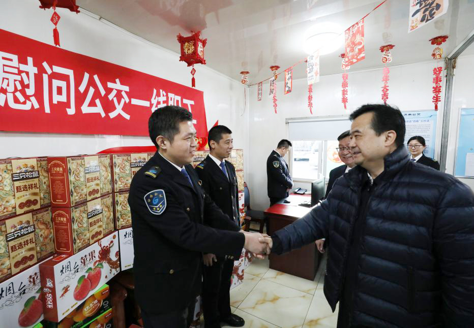 济南公交官网讯 2月2日,新春佳节来临之际,济南市委常委、统战部部长,市总工会主席张勇强,济南市总工会党组书记、常务副主席高冰一行来到济南公交中部分公司五队燕山新居站点,亲切慰问坚守岗位的公交一线职工,为大家送上节日的问候和诚挚的祝福。