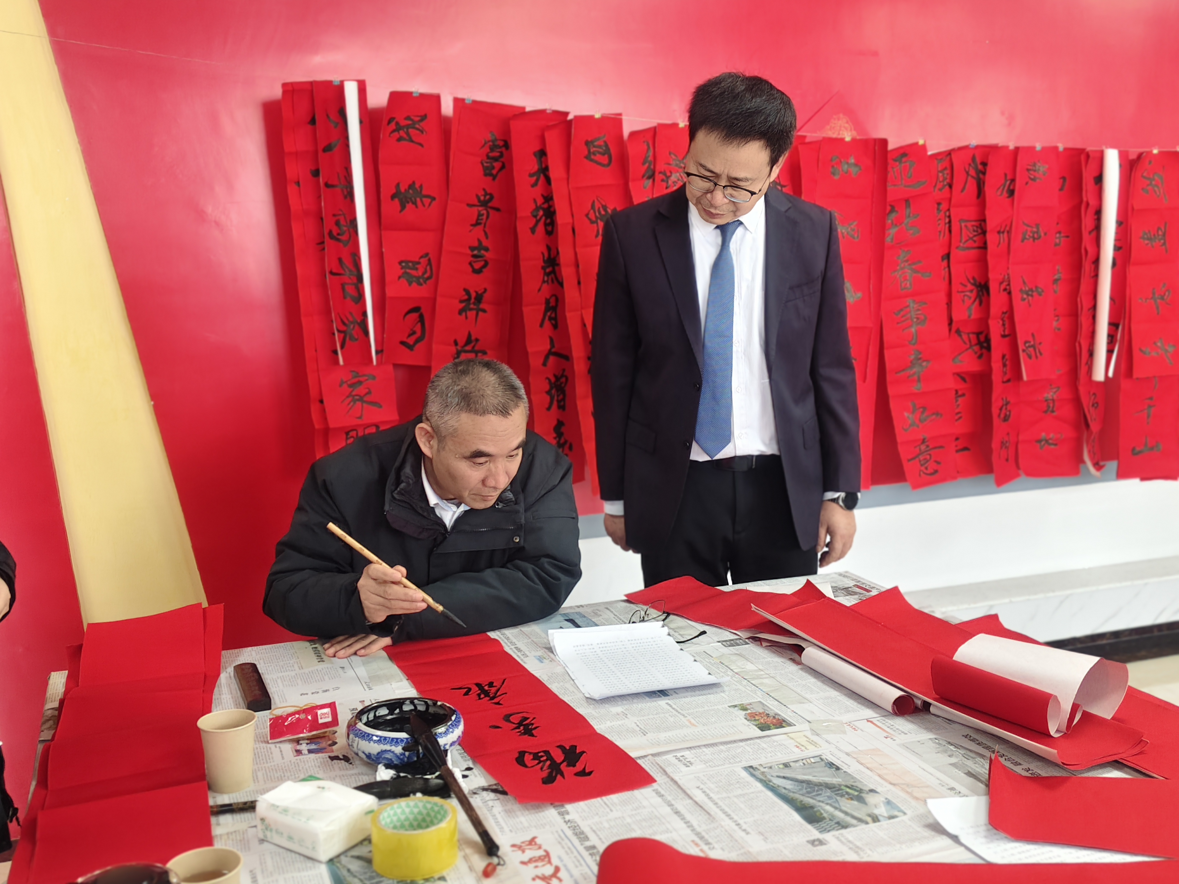 活动现场,来自各部门的书法爱好者们挥毫泼墨,笔走龙蛇,一幅幅寓意吉祥的春联和饱满有力的“福”字跃然纸上。红纸黑字间,不仅承载着对新春的美好祝愿,也传递着企业对职工和乘客的深情关怀。书法爱好者们将一幅幅满含新春愿景的对联送给公司领导班子,并送上了节日祝福;公司领导也向前来参加活动的职工们赠送春联与福字,传递着节日的喜悦与温暖。